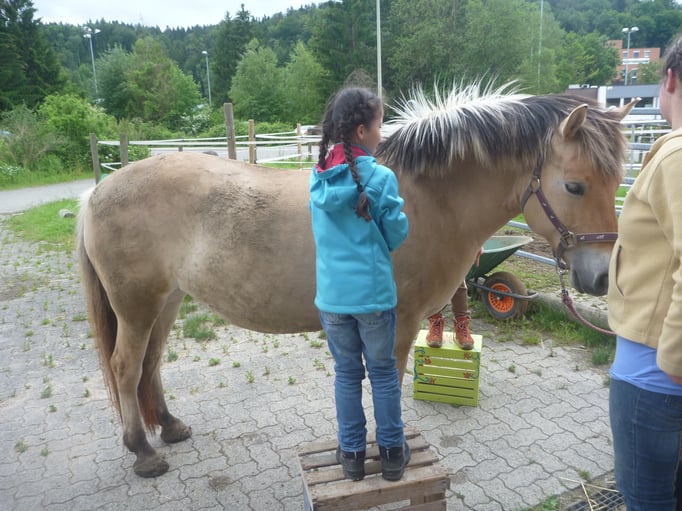 Auf dieser Stufe haben die Kinder selten Zügel in der Hand und reiten meistens ohne Sattel. Wir wollen zuerst das Fundament für ein pferdeschonendes Reiten legen, indem wir die Kommunikation mit dem Pferd vom Boden aus erlernen und das Gleichgewicht mit Voltigeübungen und Spielen verbessern.