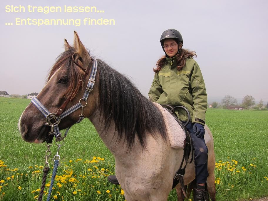 Im Umgang mit dem Pferd und beim Reiten wird der Mensch ganzheitlich angesprochen: körperlich, emotional, geistig und sozial. Zur pferdegestützten Therapie gehören daher wesentlich das Aufbauen einer Beziehung, das Pflegen und Führen des Pferdes, Mithilfe im Stall und Unterricht in der Gruppe. Auf dem geführten Pferd kann sich der Reitende dem lösenden Bewegungsrhythmus angstfrei hingeben, gymnastische Übungen und Geschicklichkeitsspiele ausführen. Ausreiten auf dem Handpferd oder Reiten lernen/ aktives Reiten bieten sich als weiterführende Möglichkeiten an.