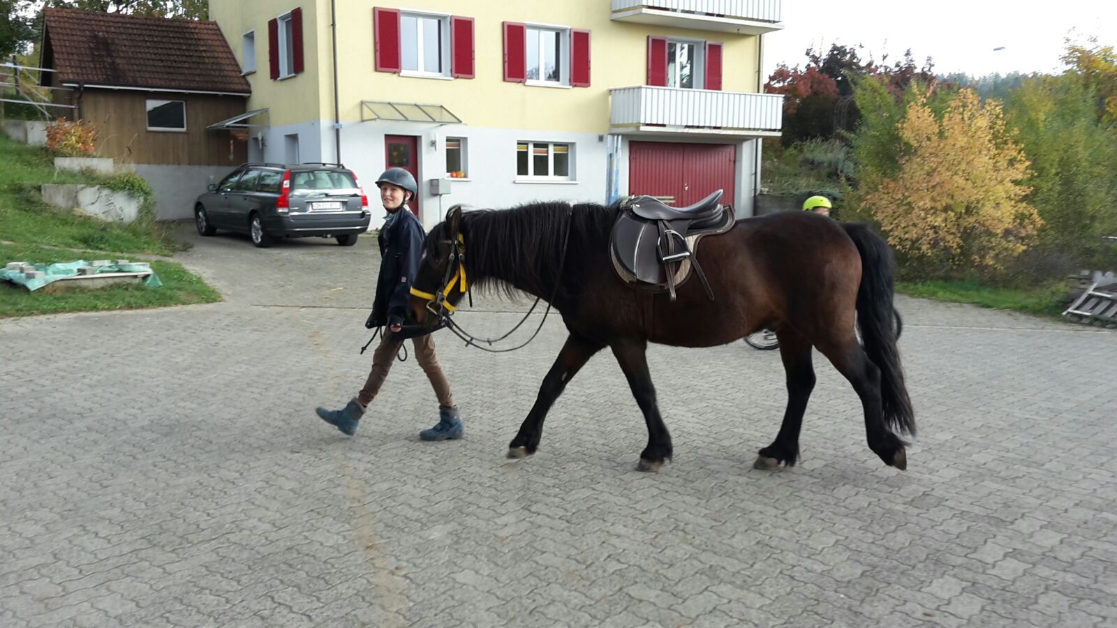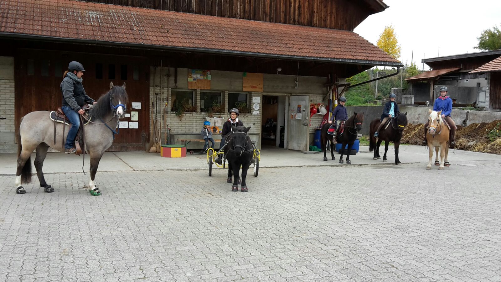 Die Reitschüler verständigen sich nun vom Rücken der Pferde aus. Solange dies nicht zuverlässig klappt, teilen sich weiterhin zwei Kinder oder Jugendliche ein Pferd, damit die Sicherheit gewährleistet ist. Weiterhin gehört auch die Pferdepflege, sowie das Satteln und Zäumen, natürlich immer unter Anleitung und Aufsicht, zur Lektion.